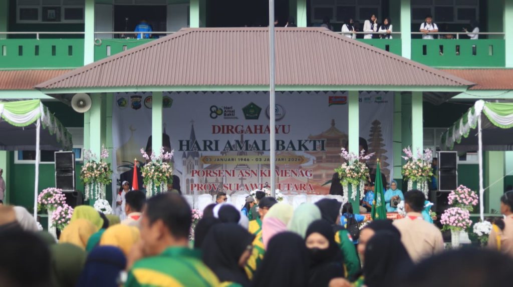 iainmanado.official – Pembukaan Pekan Olahraga dan Seni (PORSENI) Aparatur Sipil Negara (ASN) Kementerian Agama Tingkat Provinsi Sulawesi Utara resmi dilaksanakan pada Rabu, 8 Januari 2026. Kegiatan ini merupakan rangkaian semarak peringatan Hari Amal Bhakti (HAB) ke-80 Kementerian Agama Tahun 2026, yang diselenggarakan oleh Kantor Kementerian Agama Kota Kotamobagu.