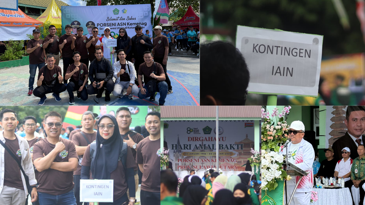 Wakil Rektor I IAIN Manado, Prof. Dr. Edi Gunawan, M.H.I., selaku perwakilan Rektor menyampaikan dukungan penuh terhadap partisipasi kontingen IAIN Manado dalam ajang PORSENI ASN Kemenag Sulut 2026. Ia berharap kegiatan ini dapat menjadi sarana mempererat kebersamaan, meningkatkan semangat kerja, serta menumbuhkan nilai-nilai sportivitas dan solidaritas antar ASN Kementerian Agama.