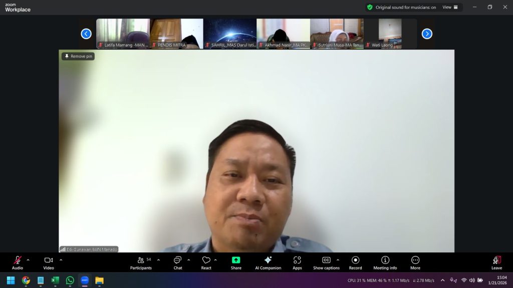 iainmanado.official-Kanwil Kementerian Agama Provinsi Sulawesi Utara menggelar kegiatan percepatan pengisian Pangkalan Data Sekolah dan Siswa (PDSS) pada Rabu, 21 Januari 2026. Kegiatan ini dilaksanakan secara daring melalui zoom meeting dan diikuti oleh Kepala Madrasah serta Pengawas Pendidikan Agama Islam (PAI) di bawah naungan Kementerian Agama Provinsi Sulawesi Utara.